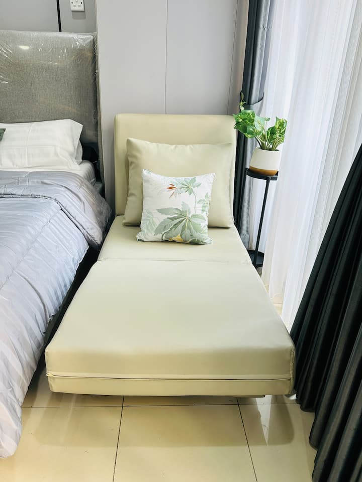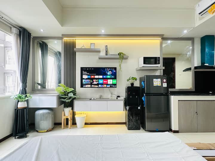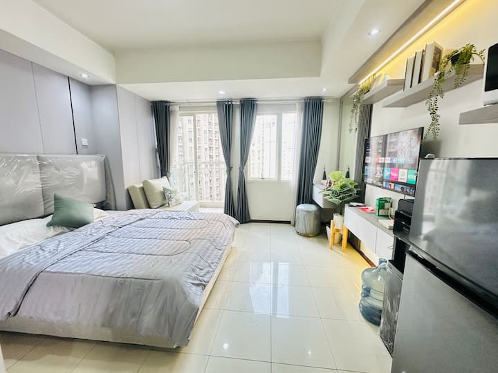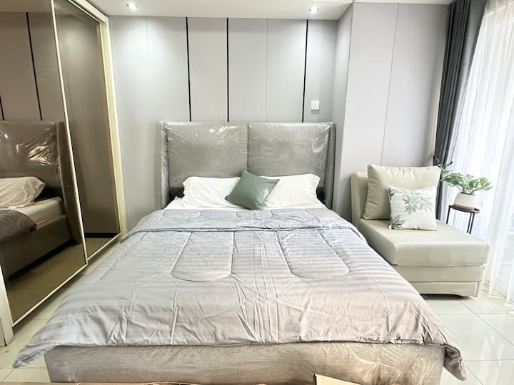 Студио•Стилно сиво•Изглед към басейна•Директно до мола