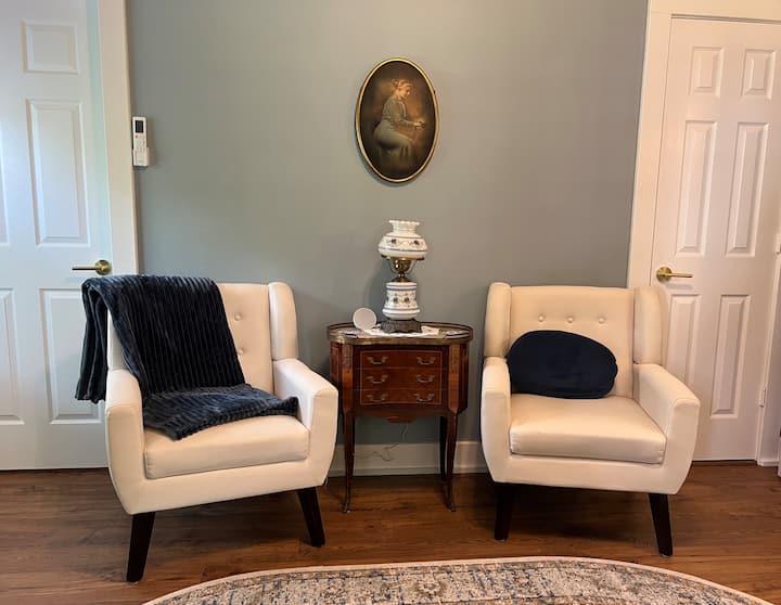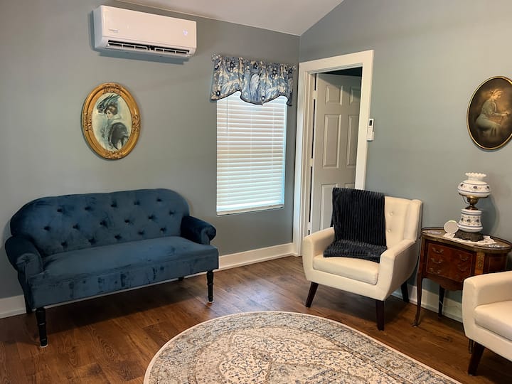 Томи и аз закупихме Бенефийлд Хаус през 2022 г., след като потърсихме идеалния дом в Джеферсън в продължение на много години. За първи път дойдохме в Джеферсън на медения си месец през 2006 г., влюбихме се в този вълшебен малък град и винаги казвахме, че един ден ще притежаваме място за нощувка и закуска тук. Мечтите ни най - накрая се сбъднаха! Много сме развълнувани да споделим историята и романтиката на този дом с вас.
