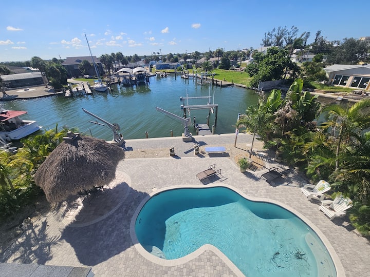 Частен дом с отопляем басейн със солена вода и док за лодки