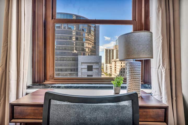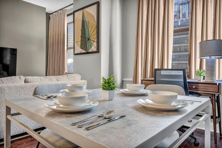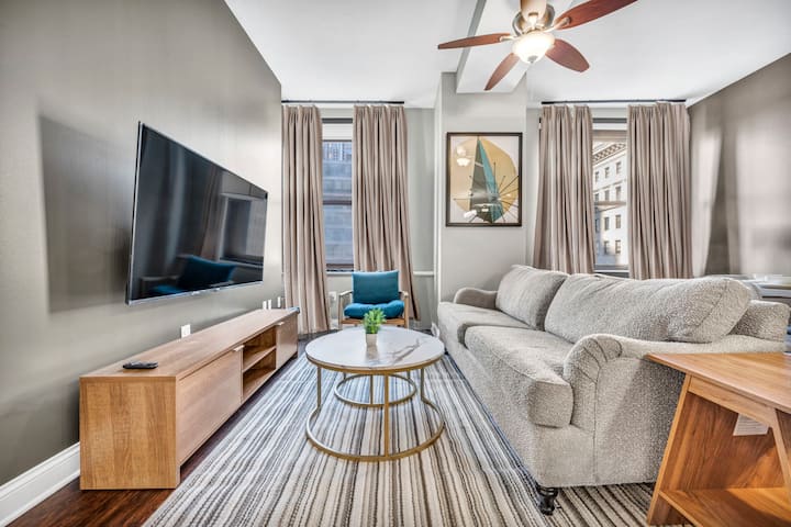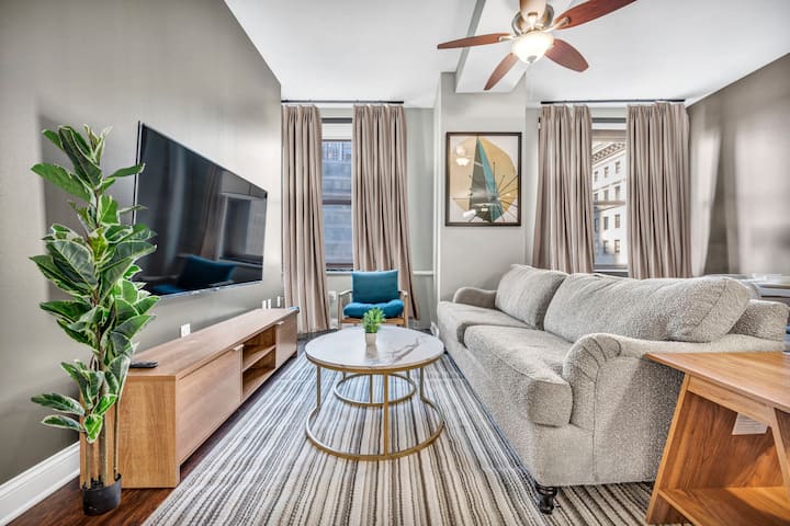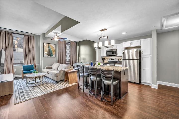 Отседнете в един от най-луксозните апартаменти в Кливланд, създаден за гости, които ценят елегантността, комфорта и удобството. С оценка за пешеходна достъпност 98/100, вие сте само на няколко минути от най-добрите заведения за хранене, нощен живот и атракции в града – след това се оттеглете в своя личен оазис, за да се отпуснете със стил.