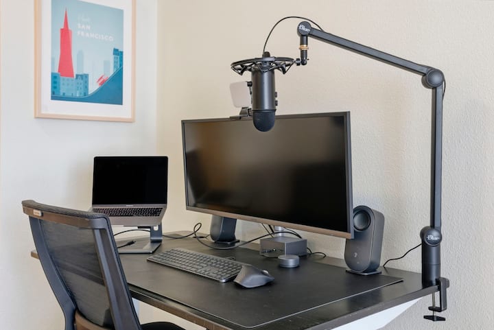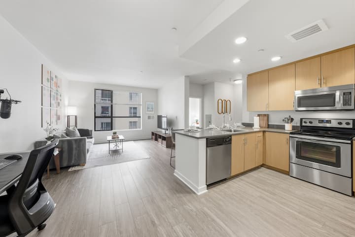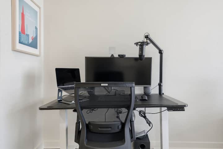 Ще намерите ултрависокоскоростен Wi - Fi, регулируемо стоящо бюро, стол за хранене, 34 - инчов монитор, сгъваем зелен екран, микрофон и др. И ще се насладите на обзаведено място с удобства като заредена кухня, смарт телевизор, първокласно спално бельо, спално бельо, кърпи, качествени тоалетни принадлежности и перално помещение. Отнасяме се сериозно към чистотата и всеки апартамент е безопасен и професионално хигиенизиран.