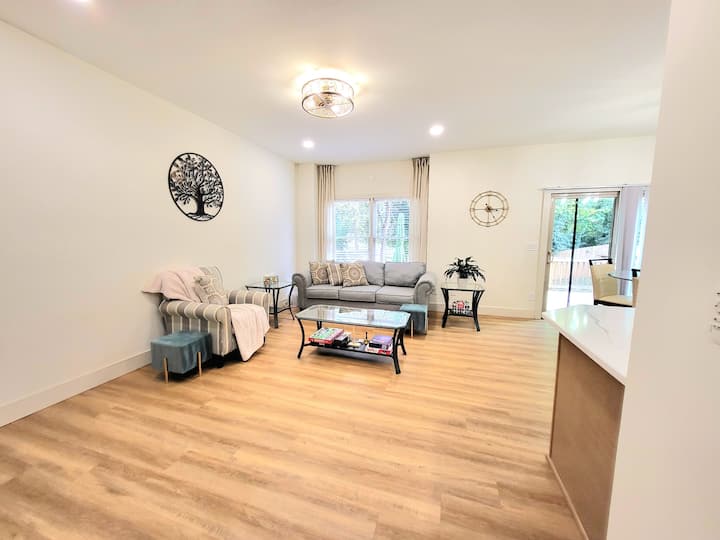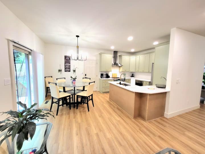Куийн Сити Ландинг – само на 5 минути от летище CLT и на 8 минути от центъра на града. Този модерен едноетажен дом е предназначен за пътуващи професионалисти, но е идеален за семейства и любители на домашни любимци, които искат комфорт, удобство и стил. Насладете се на отворено, слънчево оформление със светонепропускливи завеси, бърз Wi-Fi, напълно ограден заден двор и спокойно местоположение на задънена улица. Лесно могат да се настанят до 9 гости.