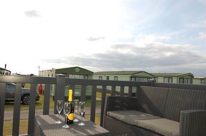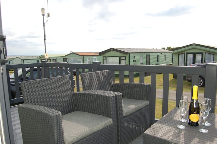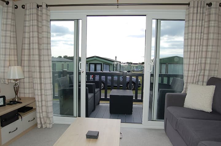 Тази зашеметяваща съвременна каравана се радва на прекрасно местоположение на обекта. Обзаведено е с качествени предмети и спално бельо с хотелско качество. Разполага с голяма всекидневна с отворен план, включително трапезария и висококачествена кухня. За разлика от подобни каравани с 2 спални, този има самостоятелна баня с вана, както и семейна баня с душ.