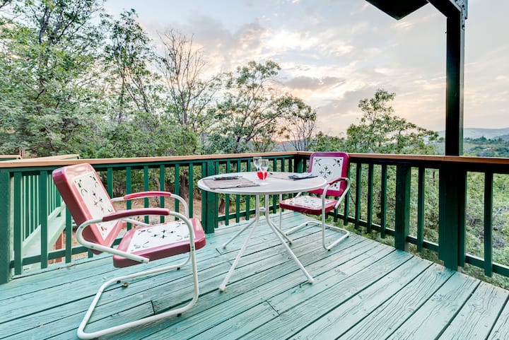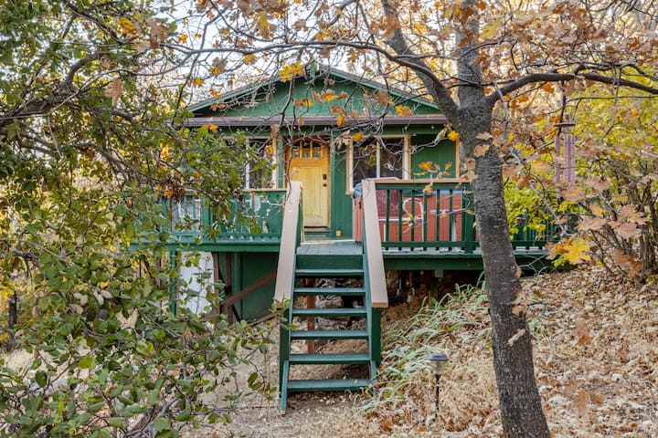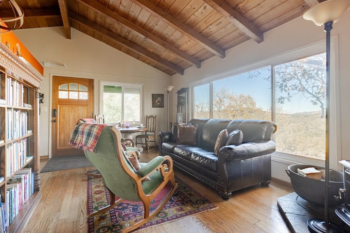 Хижата с две спални и една баня е на малко повече от миля от историческия град Джулиан, но това е частно светилище с панорамна гора и изглед към вулкана.