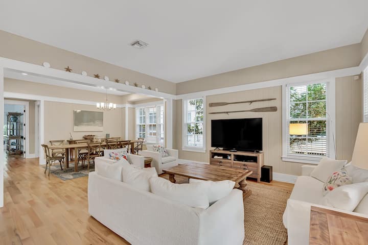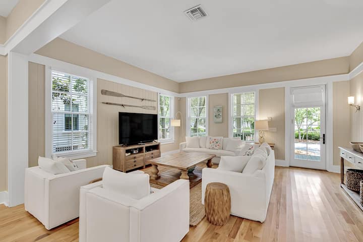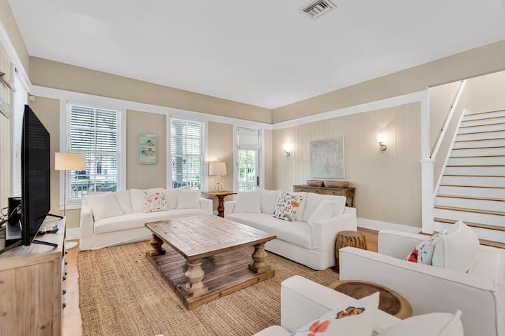 Отпуснете се в крайбрежния лукс на Coastal Haven, красиво обзаведен ваканционен дом с 4 спални и 4,5 бани във WaterColor, Флорида, професионално управляван от Beach Habitats 30A. Перфектно за семейства или групи до 10 души, това просторно място за отдих разполага с чисто нови мебели, 4 безплатни велосипеда, 6-местна количка за голф и пълен достъп до ексклузивните удобства на WaterColor. Представете си мързеливи сутрини в откритото си жилищно пространство, вечери на грил в частния вътрешен двор или бързи разходки до белите като захар плажове – всичко това, докато се наслаждавате на спокойната атмосфера на Санта Роза Бийч. С внимателно подбрани детайли като специално работно пространство, множество открити зони за отдих и самостоятелни бани за всяка спалня, този дом е идеалната ви база за освежаваща почивка в 30A, съчетаваща модерен комфорт с непреходен крайбрежен чар.