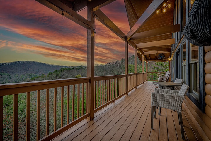 Дървена колиба с чар – хидромасажна вана + камина + гледка към планината