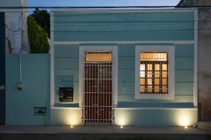 Casa Ya'Axchéе едноетажна къща от 1900 г. и наскоро ремонтирана, разположена в центъра на Мерида, а интериорът ѝ е заобиколен от растения и с отлични идеи за интериорен дизайн. Къщата разполага с: