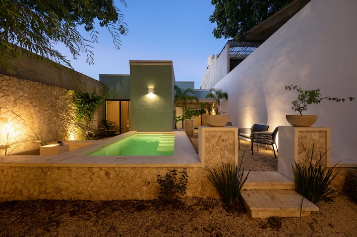 Casa Ya'axchéпредлага на посетителите си идеалното място да се отпуснат и да прекарат дните си в Мерида. Цялата къща е оборудвана с климатик и всичките ѝ мебели са създадени за измерване от мексикански занаятчии и внимателно подбрани, за да осигурят комфорт. Опитахме се да се възползваме от много кътчета на къщата, за да осигурим пространство и да се насладим на комфортния живот, предлаган от град Мерида. Така че, независимо къде се намирате, можете да намерите място, където да седнете, да пиете кафе, да четете, да говорите, да слушате музика или просто да съзерцавате някоя от 4 - те вътрешни градини на къщата, които изпълват къщата с осветление и растителност.