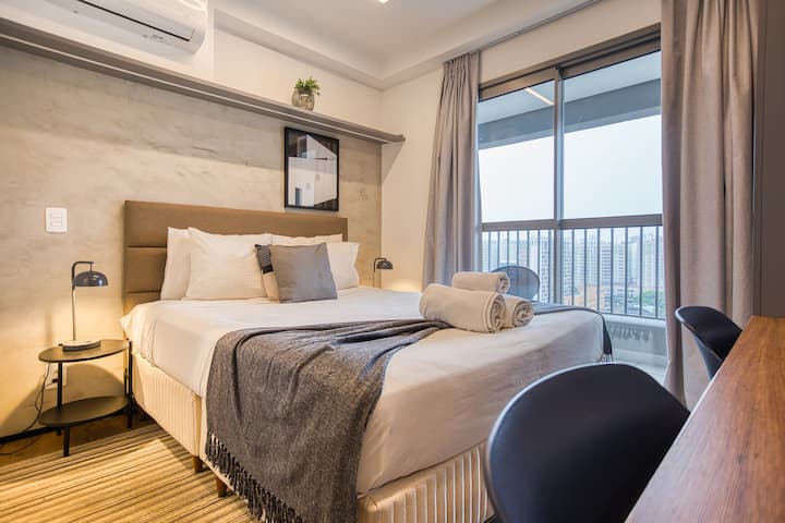 Казвам се Дебора, аз съм главният изпълнителен директор на 360 Suites – компания, която има експертен екип в управлението на независими апартаменти в жилищни сгради. Нашите имоти са разпръснати в 50 локации в Сао Пауло. Очакваме ви!