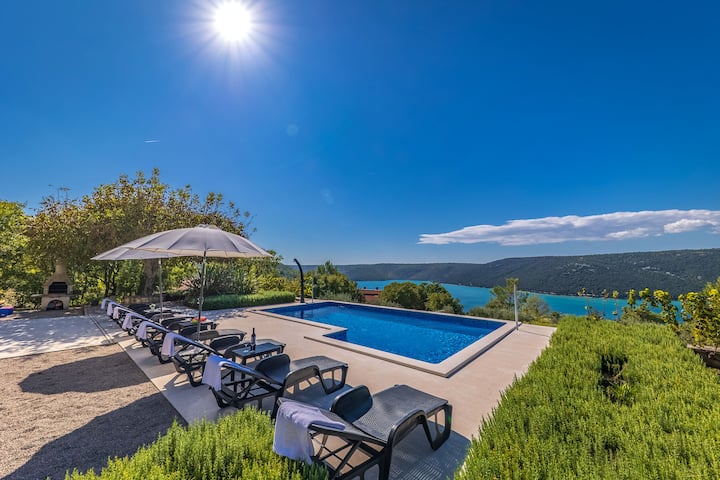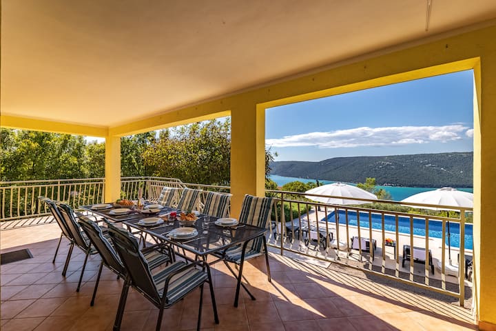 Къща с басейн с изглед към морето Mytilus – Happy Rentals
