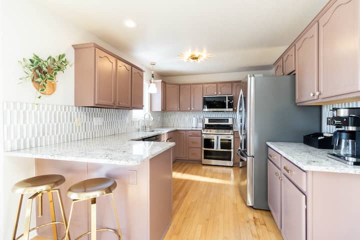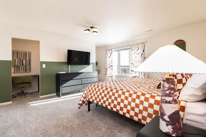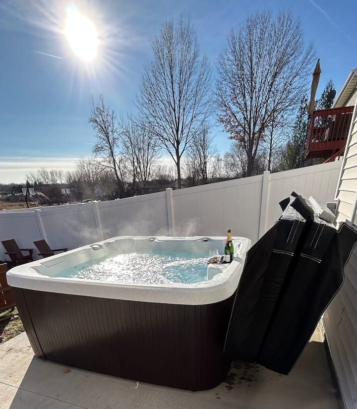 Добре дошли в уединеното място в Уест Де Мойн. Този просторен дом с 5 спални и 3,5 бани предлага комфорт и стил с частна тераса и заден двор, хидромасажна вана, домашен фитнес и безплатен паркинг. Намира се на по-малко от 10 минути от центъра на Джордан Крийк и Топголф, на 15 минути от летището и в близост до големи спортни комплекси – идеално за семейства, екипи или бизнес пътници. Побира 12 – 15 души.