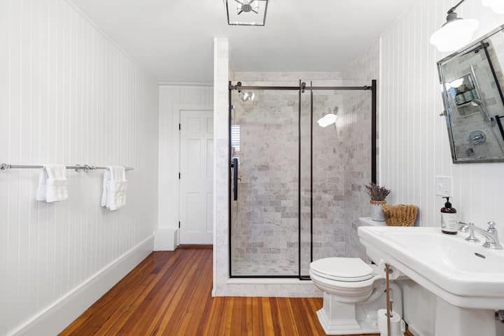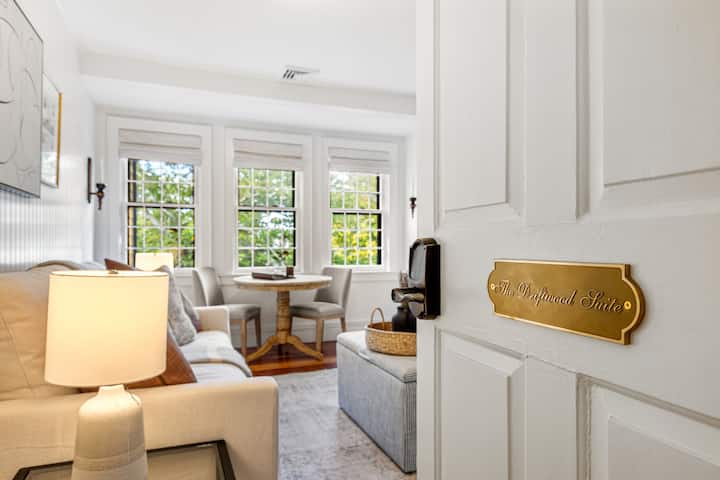 Добре дошли в The Driftwood Suite – спокойно и изискано място за отдих, разположено в The Royce on Spring, първокласния луксозен бутиков хотел в Нюпорт. С изглед към нашия частен двор от синьо камъче, този апартамент на втория етаж съчетава изискан дизайн със спокойния крайбрежен характер на Нюпорт.