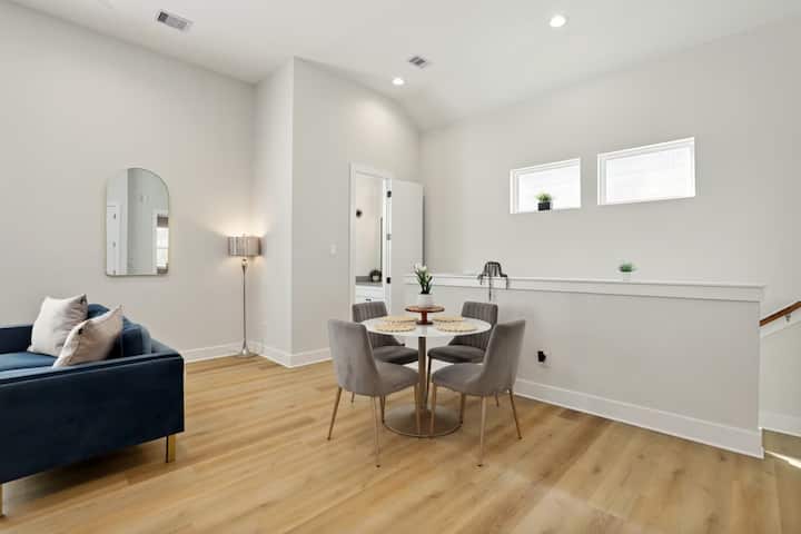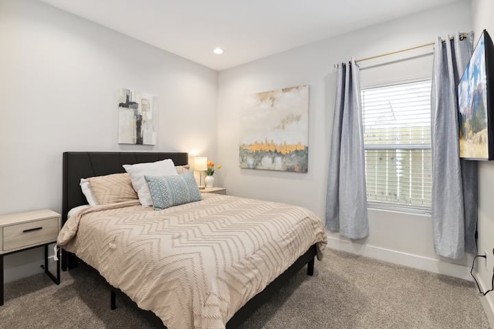 Добре дошли в стилното си убежище в Хюстън в затворен квартал! Само на няколко минути от медицинския център, стадиона NRG, центъра на града и музейния квартал, този модерен престой предлага комфорт и удобство. Насладете се на легла с първокласни спално бельо, напълно оборудвана кухня, смарт телевизори, бърз Wi-Fi и безплатен паркинг. Перфектно за семейства, двойки, пътуващи медицински сестри и бизнес гости, които търсят безопасен и релаксиращ дом далеч от дома. Ограничение за възраст над 22 години.