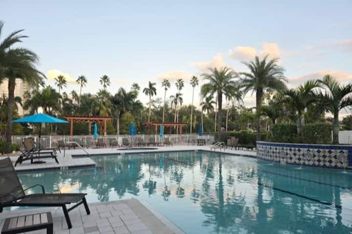 Добре дошли в The Ember! Вашето светилище на 23-ия етаж в сърцето на центъра на Форт Майерс. Със спираща дъха гледка към града, уютен декор и напълно оборудвана кухня, това уединено място с 1 спалня е едновременно елегантно и привлекателно. Започнете деня си в кафенето, посетете фитнес залата, отпуснете се край басейна или резервирайте релаксиращ масаж в спа центъра на място. Разходете се до най - добрите ресторанти, барове и развлечения. Тук ще откриете безупречна комбинация от комфорт и градска енергия, предназначена за двойки, семейства или приятели, които търсят стилно място за престой.