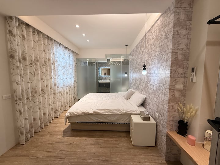 На 4 минути пеша от спирка Син И Ан Хъ и метростанция, в близост до нощния пазар Тунхуа и сградата 101, светла, просторна и удобна стая за шест души (две бани)