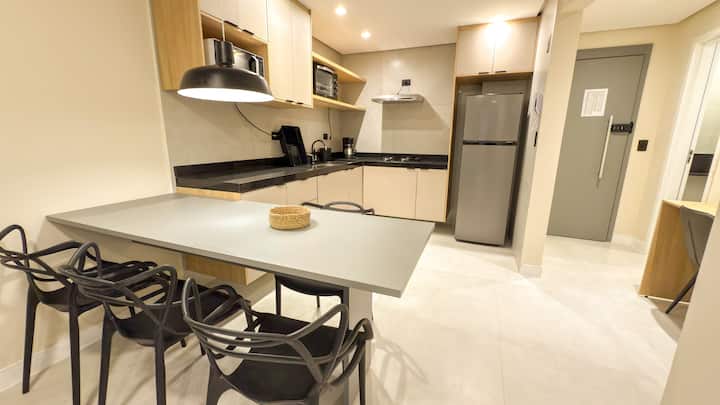 Побира до 6 души със стил и практичност. Комплекс с апартаменти с повече от 30 възможности за отдих: басейн, фитнес зала, киносалон, коворкинг, място за домашни любимци, гурме, бална зала, спортен бар и много други. Отлично местоположение, на по-малко от 8 минути пеша от плажа, пазарите, ресторантите, баровете и битпазара. 100% обзаведено, с прибори, спално бельо, баня и пералня.