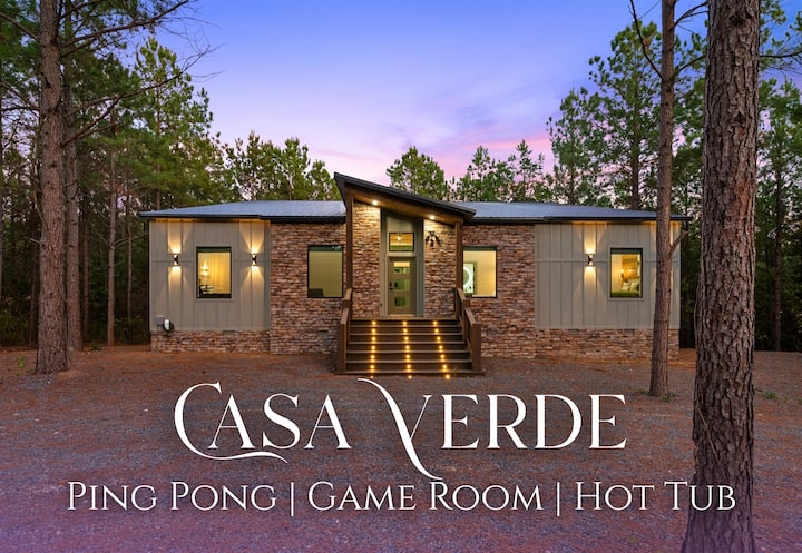 Casa Verde е модерно място за почивка, заобиколено от високи борове в Брокън Боу, Оклахома. Тази дървена колиба с 4 спални и 4 бани може да настани 14 души и разполага с 3 суити с голямо двойно легло и стая с двуетажни легла с 2 двойни и 2 големи двойни легла. Насладете се на стилно отворено жилищно пространство, напълно оборудвана кухня, стая за игри, пинг-понг, хидромасажна вана и зарядно за електромобили. Само на няколко минути от държавния парк Бивърс Бенд и Хочатаун, това е идеалното място за почивка, игра и връзка с природата.