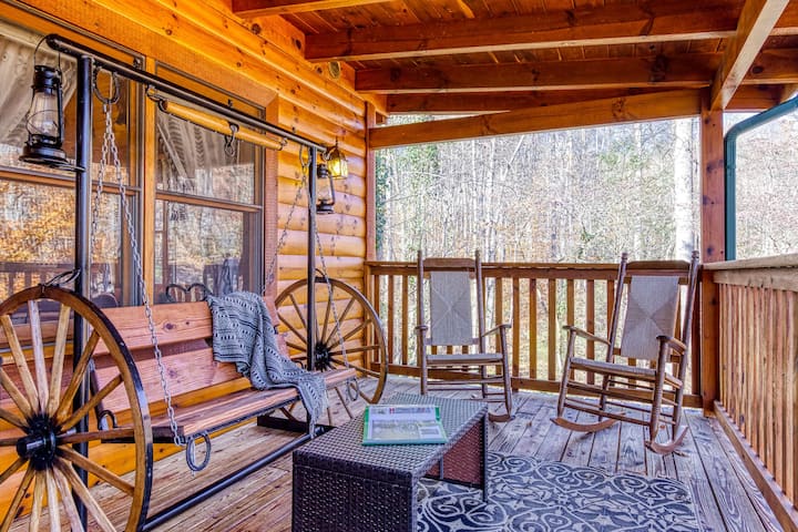 Тази дървена колиба предлага уютна и уединена атмосфера за релаксиращ престой. Независимо дали пиете нещо на терасата, или се отпускате след ден в града, откритите пространства правят тази дървена колиба истинско убежище в Смокий Маунтин.