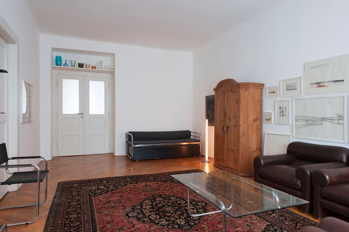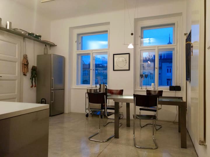 Здравейте! Брат ми и аз отдаваме под наем семейното ни жилище в Прага. Апартаментът ни винаги е готов за гости като вас. Обичаме да поддържаме апартамента чист, както бихте очаквали да бъде в добър хотел. Но това не е хотел, а дом. Ако изберете да отседнете при нас, наистина се надяваме, че апартаментът ще бъде и вашият дом далеч от дома.