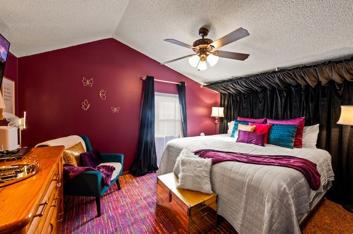β Π‘ΠΏΠ°Π»Π½Ρ β2: ΡΠΏΠ°Π»Π½Ρ Ρ Π΄Π²ΠΎΠΉΠ½ΠΎ Π»Π΅Π³Π»ΠΎ Ρ ΡΠΎΠ·ΠΎΠ² ΠΈ Π·Π»Π°ΡΠ΅Π½ Π΄Π΅ΠΊΠΎΡ, ΠΊΠΎΠΌΠ±ΠΈΠ½Π°ΡΠΈΡ ΠΎΡ ΠΊΠ°Π΄ΠΈΡΠ΅, Π²ΡΠ·Π³Π»Π°Π²Π½ΠΈΡΠΈ ΠΈ ΠΌΠ΅ΠΊΠΈ ΠΎΠ΄Π΅ΡΠ»Π°, ΠΊΡΠΈΡΡΠ°Π»Π΅Π½ ΡΠ°Π²Π°Π½Π΅Π½ ΡΠ²Π΅ΡΠΈΠ»Π½ΠΈΠΊ, ΠΊΠΎΠΉΡΠΎ ΠΏΡΠΎΠ΅ΠΊΡΠΈΡΠ° Π±Π»Π΅ΡΡΡΡ ΡΠ°Ρ ΠΏΠΎ ΡΡΠ΅Π½ΠΈΡΠ΅, ΡΠΌΠ°ΡΡ ΡΠ΅Π»Π΅Π²ΠΈΠ·ΠΎΡ ΠΈ ΡΠΊΡΠΈΠ½.