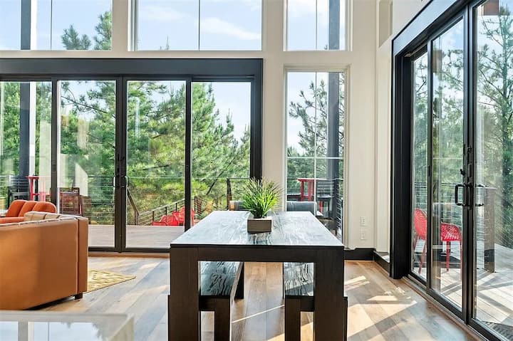 Добре дошли в Buttonwood Retreat (Tatanka) – чисто нова луксозна хижа, сгушена сред боровете на Sunrise Ridge в Хокатаун. Тази модерна ферма с 5 спални и 6,5 бани се намира на площ от над 4000 кв. м в края на тиха улица, проектирана изцяло за луксозни почивки и краткосрочни наеми. С място за до 12 гости, идеално е за големи семейства, групи приятели и пътувания с няколко семейства, които търсят стил, комфорт и непрекъснато забавление.
