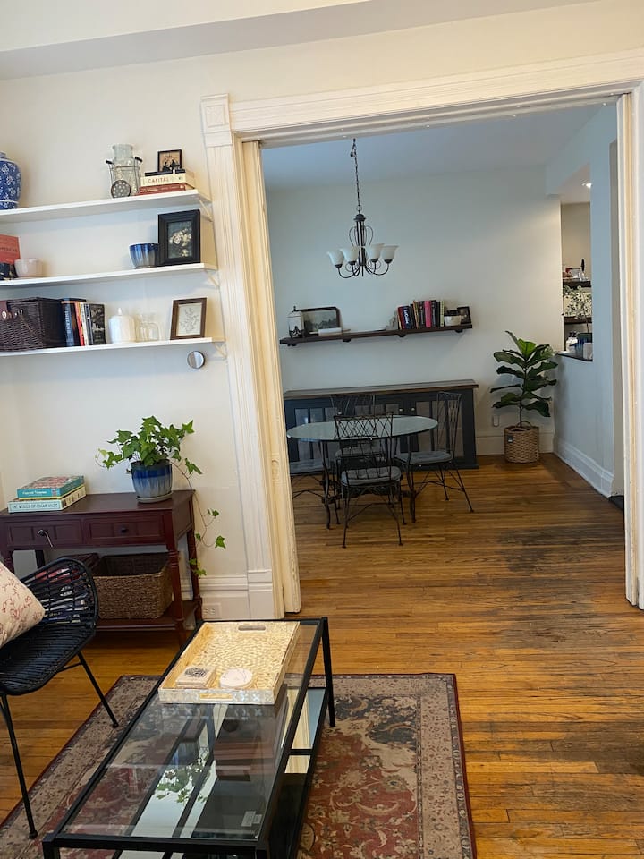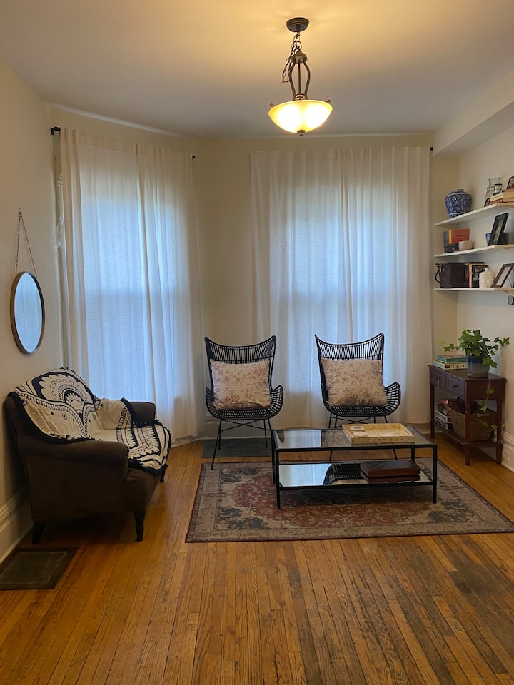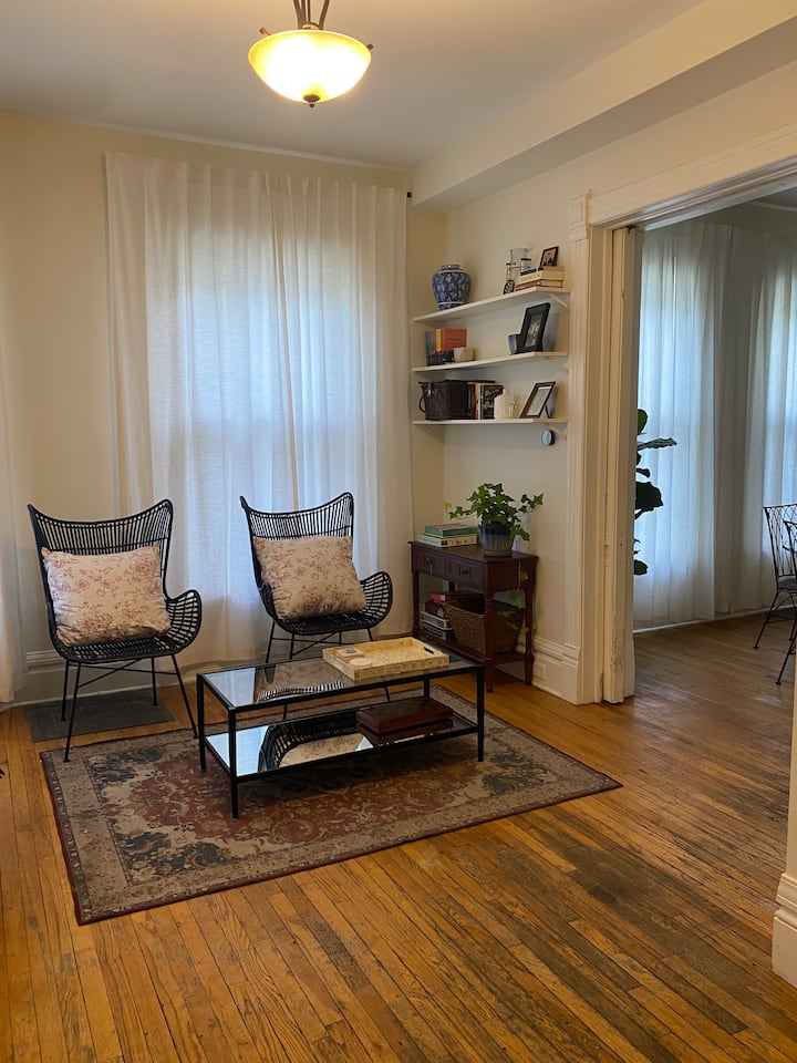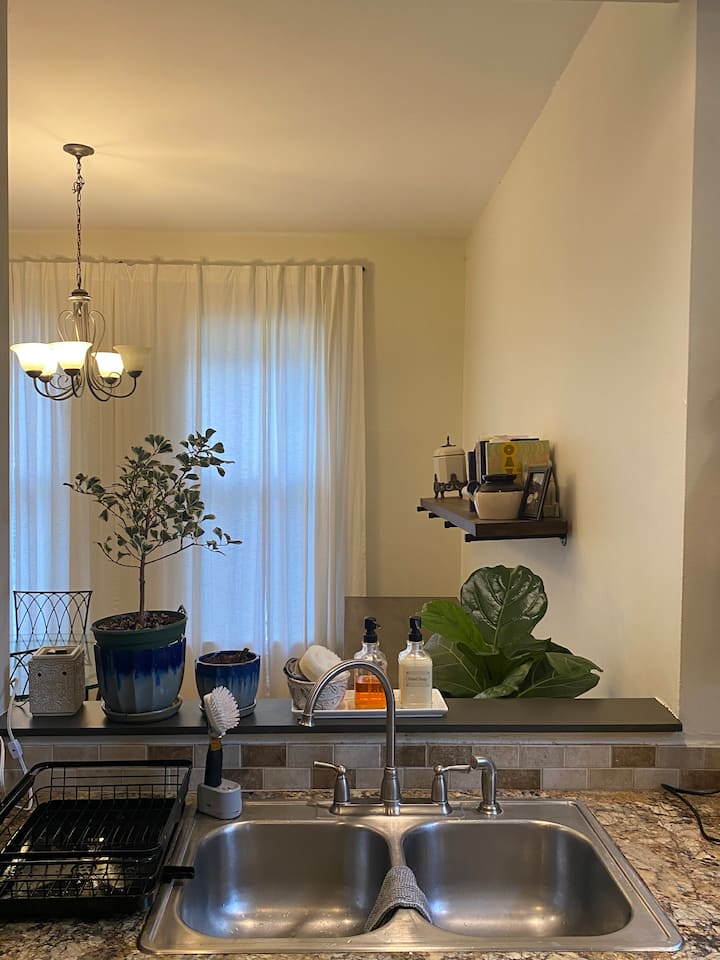 Моля, обърнете внимание, че нашето място за престой не е идеално за гости с двигателни затруднения/нужди за достъпност. Има стълби, водещи до предния вход, както и стълби вътре за достъп до спалнята, банята и пералното помещение. Както и крехки аксесоари и други предизвикателства. Препоръчваме на гостите да използват преценката си, когато резервират. В този апартамент се допускат домашни любимци. Имаме куче, 8-годишен черен лабрадор. Не искаме други домашни любимци в собствеността, дори ако не влизат вътре.