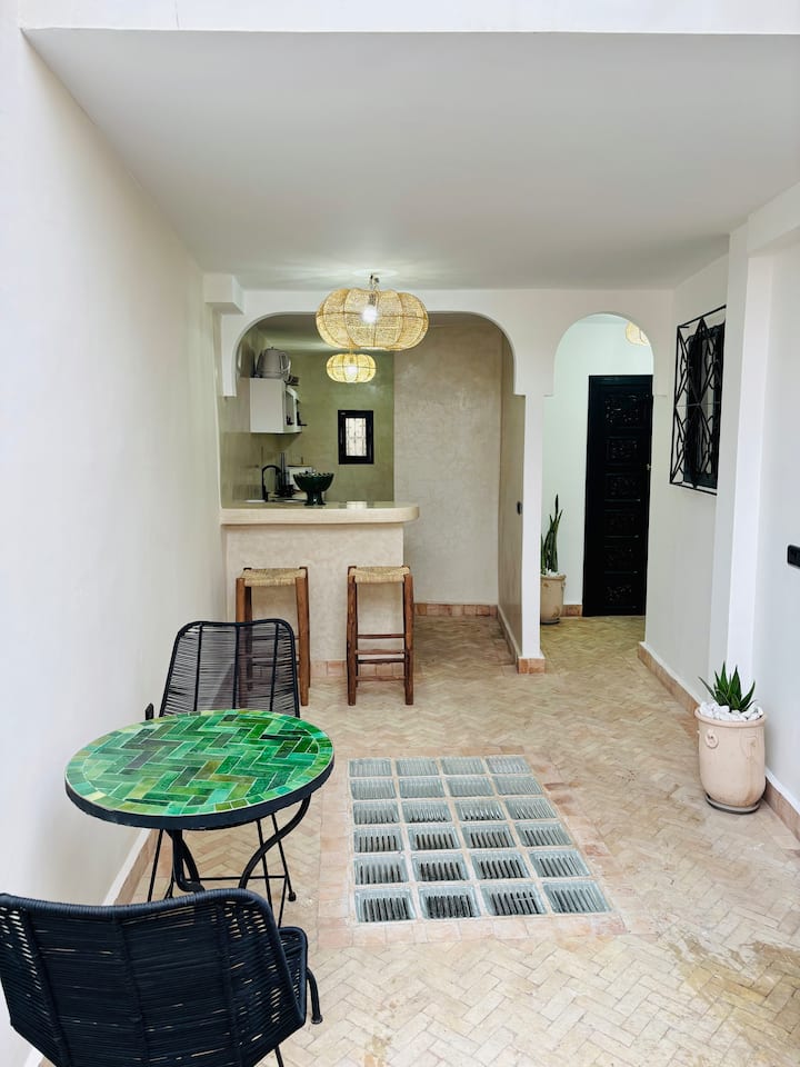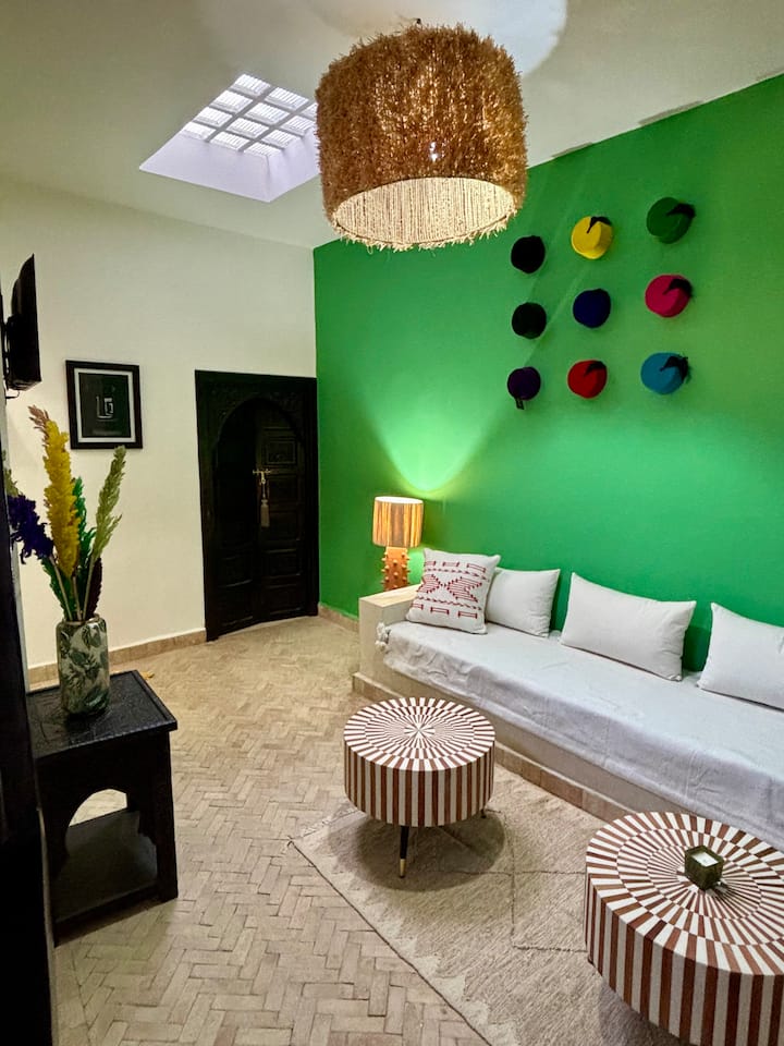 Очарователен риад, разположен в сърцето на Касба в Маракеш, на няколко крачки от гробниците на Саадите, този риад с характер ви посреща в спокойна и топла атмосфера. Разполага с 3 комфортни спални, всяка със собствена баня, в които могат да се настанят до 6 гости. Организирани около традиционен вътрешен двор. Има две слънчеви тераси, една от които е изключителен покрив с панорамна гледка към Медина и планината Атлас.
