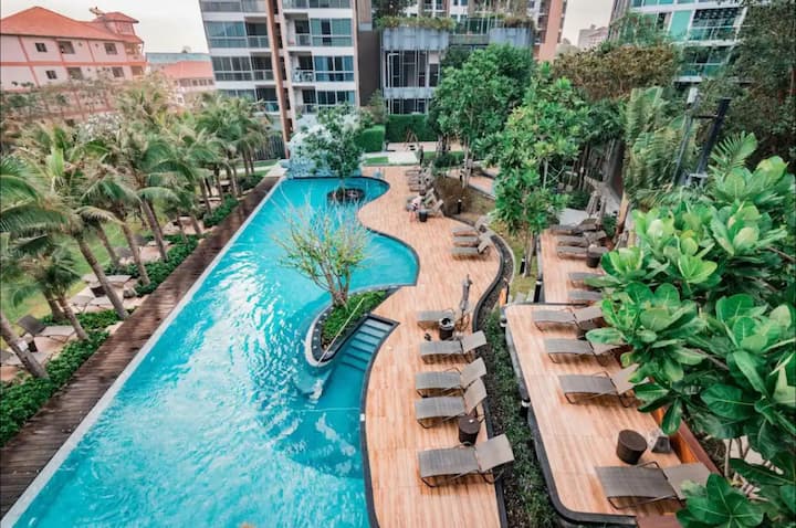#133 Препоръчан от инфлуенсъри луксозен апартамент за почивка в Паттая Unixx с басейн и фитнес зала/пълно оборудване/удобен транспорт до центъра на града/приветлив домакин