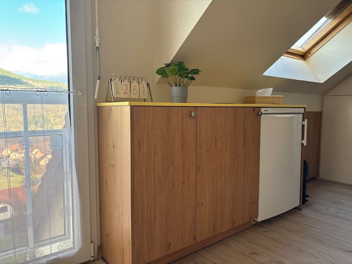 Панорамна гледка към Мюнстер • тераса с изглед към гората