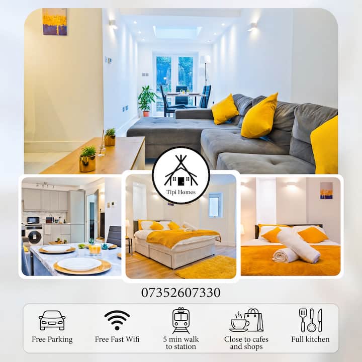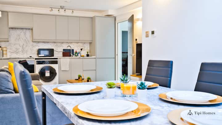 Стилен апартамент с 2 спални с градина и БЕЗПЛАТЕН паркинг | 5 минути с метро