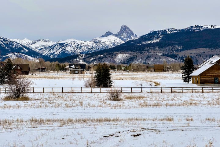 Модерно семейно убежище с хидромасажна вана, гледка към Титон, климатик