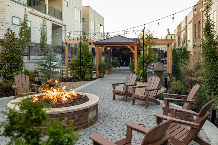 Всеки таунхаус включва собствен вътрешен двор на покрива – идеален за сутрешно кафе, коктейли в златния час или почивка след разходка из Нашвил.