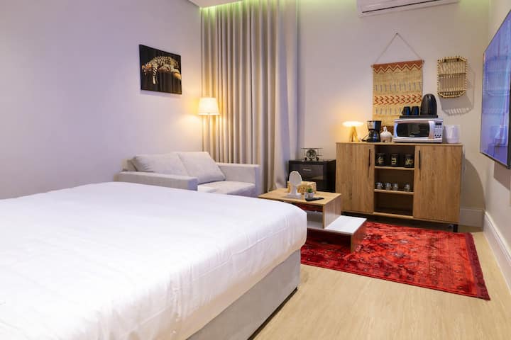 Уютно студио с 70-инчов телевизор и самостоятелно настаняване