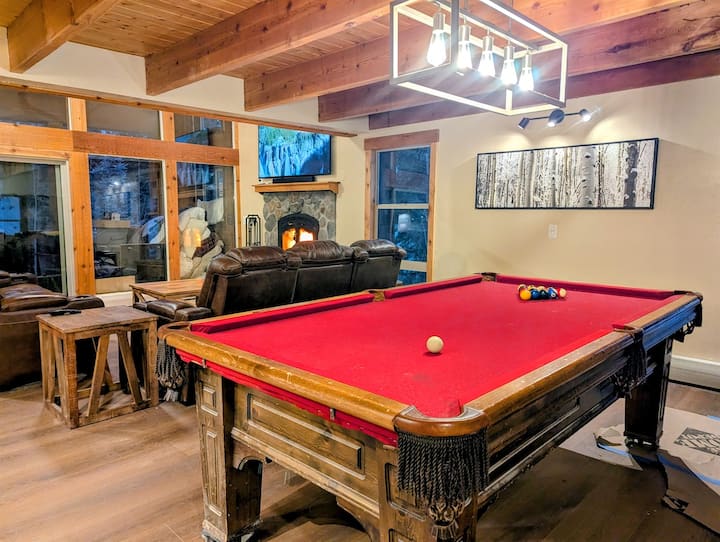 След ден на приключения се отпуснете около приветливото огнище, предизвикайте групата си на игра на билярд или футбол, потопете се във ваната с хидромасаж или се отпуснете край камината на дърва. С високоскоростния Wi-Fi на Starlink и няколко всекидневни, оборудвани с телевизори Roku, има достатъчно място и забавления за всички във вашата група, за да се разпръснете и да се насладите.