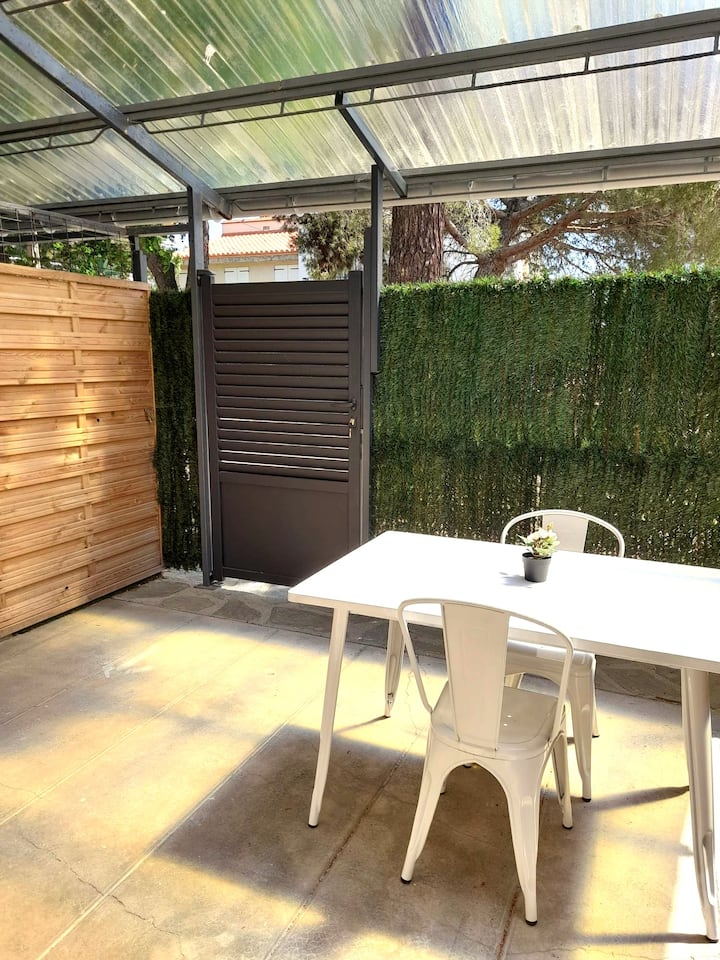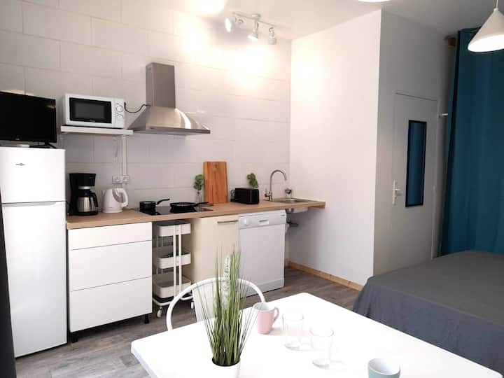 Едноетажно студио, разположено на кратка разходка от плажа Аржелес-сюр-Мер, на брега на морето, идеално, за да се насладите максимално на почивката си.