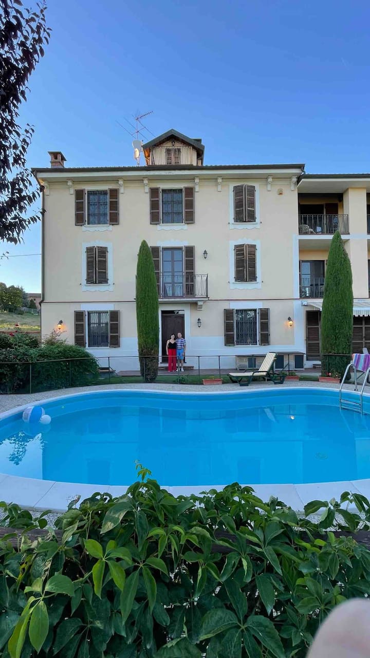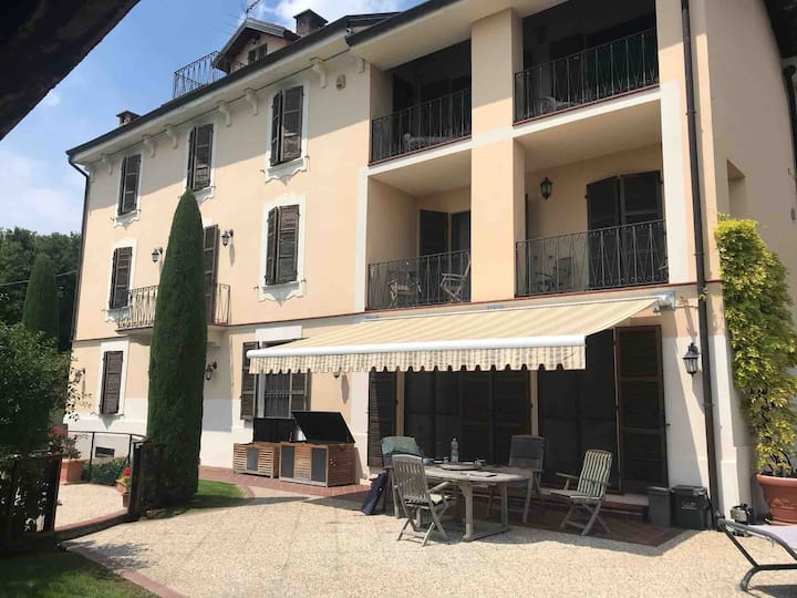 Къщата ни се намира на ръба на очарователния Бергамаско и се радва на гледки към провинцията и хълмовете от всеки прозорец и градината. Нашето село е дом на най - удивително дружелюбните и услужливи хора и ако сте навън в селото и случайно кажете на някого, че сте отседнали в къщата на Габриела и Майкъл, той ще ви донесе пресни продукти от техните градини и разпределения и местно произведено вино, но не се опитвайте да му платите! Обичат да носят подаръци.