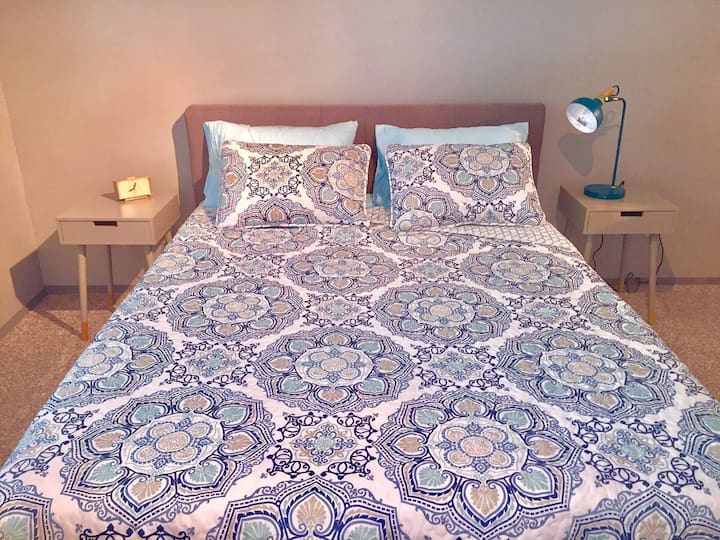 Тази модерна баня е оборудвана с тоалетна хартия (3 ролки), достатъчно, за да ви даде време да отидете до кварталния пазар, разположен само на 5 пресечки, шампоан 2 в 1, измиване на тялото, ръчно пране, хартия и освежител за въздух. Също така доставяме по една кърпа за баня, кърпа за ръце и кърпа за пране на гост. Ако имате нужда от повече, моля, донесете допълнително или ме попитайте предварително за допълнително настаняване. Това ще помогне да се запазят ниските такси за почистване. Не забравяйте, че ако се нуждаете от още, просто ни уведомете предварително.