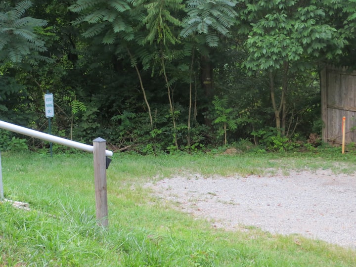 След като напуснете планината Честнът Роуд, ще пътувате по нашия (еднолентов) чакълест път на около 1/3 миля до върха на нашия хребет. Когато се приближавате до къщата, поемете по правилната алея и следвайте знаците „Паркиране на посетителите “. Апартаментът за гости разполага със собствен самостоятелен вход нагоре по (донякъде стръмните) 34 - инчови задни стъпала към палубата/балкона, която се простира по дължината на къщата. ВАЖНА ЗАБЕЛЕЖКА: Ако предпочитате да не се изкачвате по стъпалата, не се нуждаете от втората спалня и искате голяма всекидневна, разгледайте нашето студио на приземното ниво на студиото „( на приземното ниво) в земята на мира и тишината “!