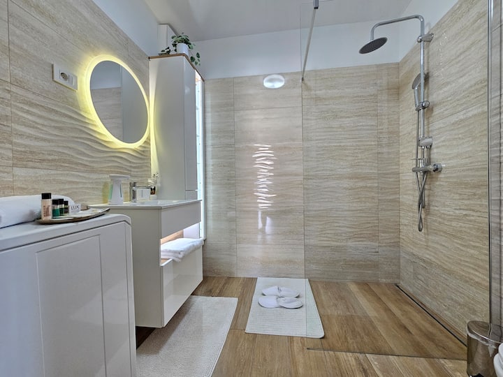 Представете си тишината и спокойствието на зеления средиземноморски пейзаж. Апартаментът се намира в тих квартал в Бонини, само на няколко километра от центъра на Копер - Каподистрия. Местоположението е идеално за екскурзии с велосипед, тъй като апартаментът се намира до няколко крайбрежни велосипедни маршрута (най - известен е Парензана) или скални катерачи и е чудесна отправна точка за посещение на автентични крайбрежни градове на Словения или Хърватска Истрия и Италия. С колата си сте на близките плажове след няколко минути.