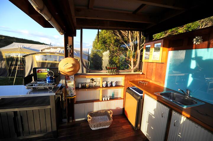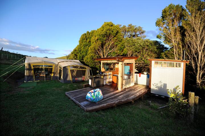Палатка и съоръжения за глемпинг на плажа Kuaotunu