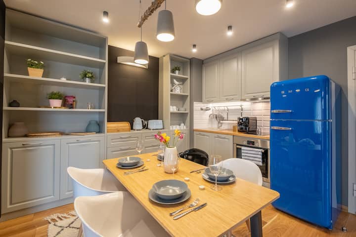 Луксозен дизайнерски апартамент – климатик, асансьор и балкон