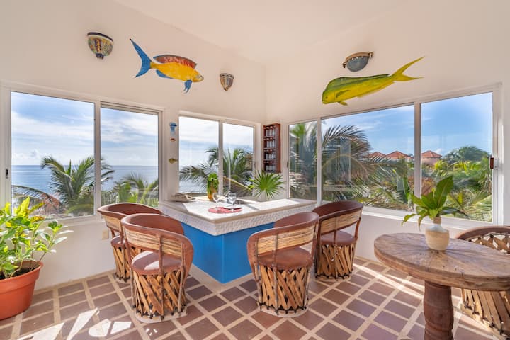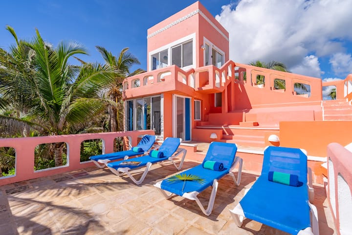 Casa Luna, вила на брега на океана в южния край на залива Халф Мун Бей в Акумал.