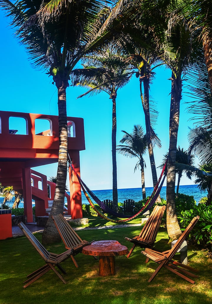 Добре дошли в Каса Луна, вашето спокойно убежище, сгушено между тюркоазените води на Карибите и буйната зеленина на джунглата Юкатан. Тази очарователна вила на брега на океана се намира на южната крива на известния залив Халф Мун Бей в Акумал и е проектирана да предлага комфорт, спокойствие и тропическа елегантност на семейства, приятели и пътешественици, които търсят незабравим крайбрежен отдих.