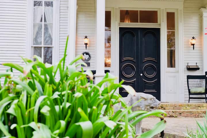 Джеферсън е нашият роден град. Оттогава се преместихме в различни части на страната, но винаги се намираме отново в тази красива част на Тексас, за да посетим семейството и да отпразнуваме празниците. Тъй като собствените ни семейства продължаваха да се разширяват, брат ми и аз, заедно със съпругите си, решихме, че е време да намерим ваканционна къща в Джеферсън. Влюбихме се в прилепената къща, историята зад нея и красивите исторически характеристики и архитектура. Така че през януари 2018 г. закупихме прилепената къща и прекарахме следващите няколко месеца, възстановявайки голяма част от дома обратно към оригиналния му чар, като същевременно добавихме някои модерни щрихи и удобства на 21 - ви век. Също така взехме решение да отворим дома за пътуващите, докато ни няма, и да споделим тази уникална част от историята на Джеферсън с всички вас.