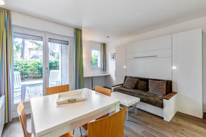 Студио от 26 кв. м, разположено в жилище, състоящо се от: 1 всекидневна, 1 спална зона, 1 кухня, 1 баня и 1 отделна тоалетна. Предимствата: център на града, градина и тераса, Wi-Fi, сейф.