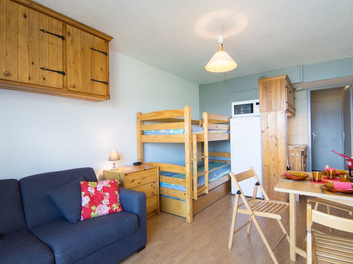 Апартаментна къща „Soyouz Vanguard “, 19 етажа. 150 м от центъра, на 150 м от ски зоната. За общо ползване: басейн с отопление (сезонна заетост: 13 декември - 10 април и 27 юни - 28 юни. Работно време на басейна: 10:00-19:30 ч.). В комплекса: достъп до интернет, асансьор, складово помещение за ски. Обществен паркинг. Магазин 200 м, хранителен магазин 50 м, ресторант, бар 200 м, автобусна спирка „Centre - Bagagerie“ 450 м, жп гара „St Jean de Maurienne“ 15 км, открит плувен басейн 150 м. Скиспортни съоръжения, писти, ски училище 200 м, ски градина 50 м, шейна 200 м. Обърнете внимание: могат да бъдат резервирани допълнителни места за настаняване. Басейнът е на 150 м от резиденцията на общинския басейн. Входът за лица под 3 - годишна възраст не е разрешен. Допускат се деца на възраст между 3 и 5 години при метеорологични условия (през зимата). Входните билети за басейна са включени в цената ви за наем и ще ви бъдат дадени, когато се настаните.