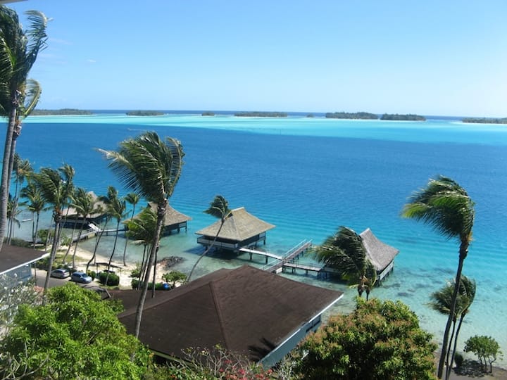 Добре дошли във вила VAHIMANUI - вашият ваканционен рай в Бора Бора! Вила VAHIMANUI се намира на хълм на 100 фута (30 метра) над морското равнище и само на 50 метра от лагуната. Тази изключителна вила с изглед към кристално сините води на лагуната предлага невероятни романтични залези, както и много уединение, което я прави идеалното място както за младоженци, така и за семейства. Този 1200 квадратни фута (110 m2) дом е част от известен луксозен комплекс, основан от Марлон Брандо и Джак Никълсън.