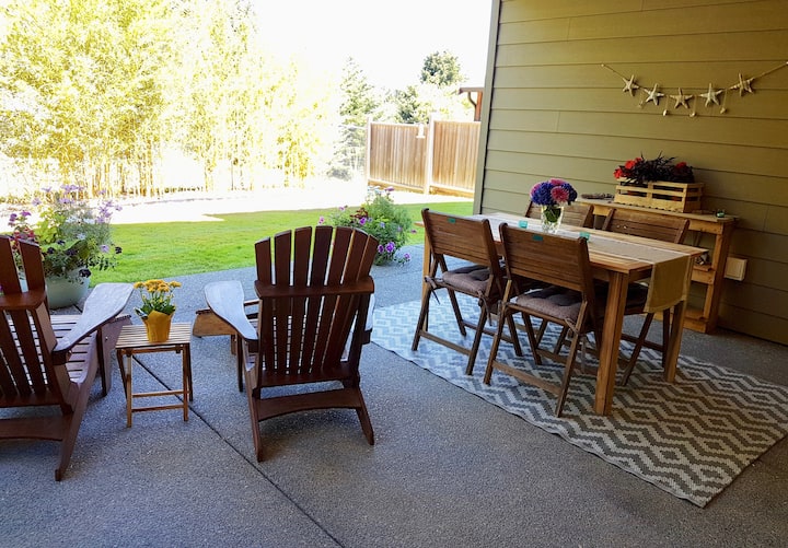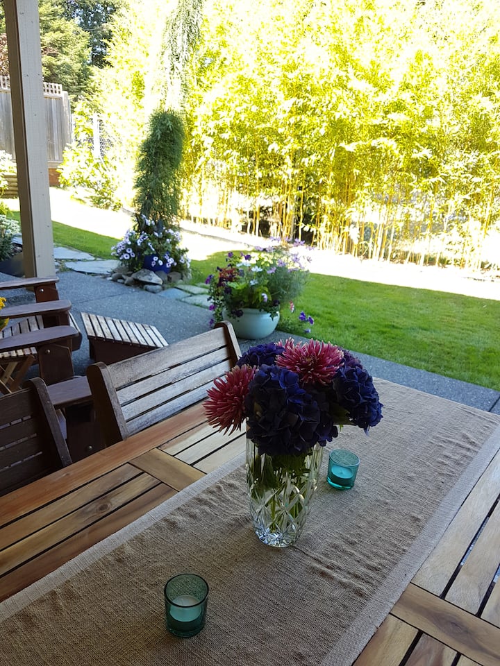 Съпругът ми и аз се преместихме от Скуамиш в долината Комокс през есента на 2018 г. и обичаме да живеем тук. Обичаме да се разхождаме в гората с четиригодишния си син и хъски/овчар. Прекарваме много време на плажа през лятото и гребаме по водата. Родителите ми Пам и Питър обичат да плават на 36 - метровата си Каталина през лятото, така че управлявам апартамента на Airbnb в дома им.