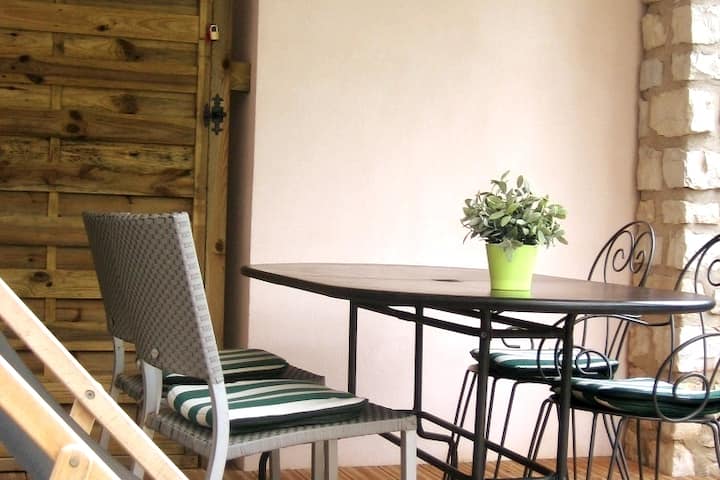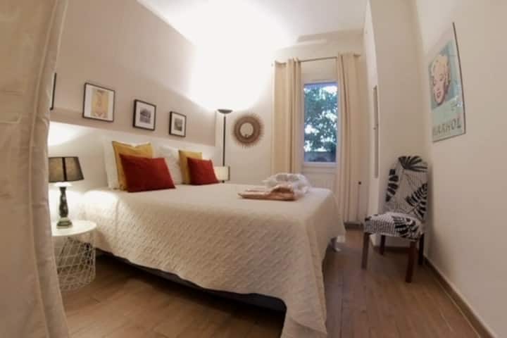 Насладете се на елегантен, напълно самостоятелен апартамент на приземен етаж с две спални и голяма самостоятелна тераса, идеален за 4/5 гости (включително бебе), идеално разположен само на няколко крачки от морето и плажа.