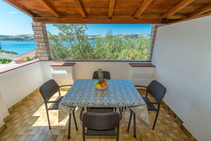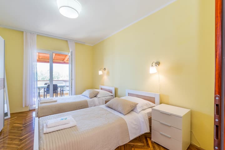 Апартамент с 2 спални• 4 души• барбекю• изглед към морето